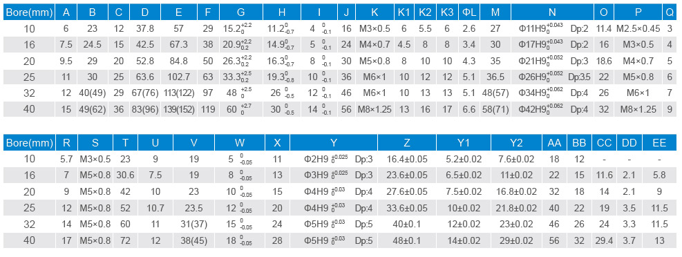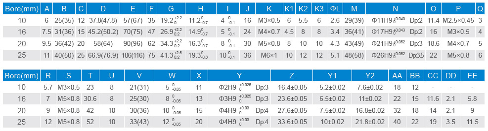 Motion Pattern | Double acting,Double acting with spring loaded,Single acting(Spring extend) | |||||