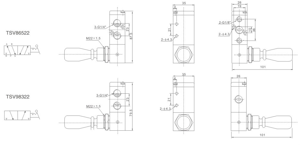 4H230-06 | 76 | 56.5 | 31.5 | 22 | 95 | 6.5 | 66.5 | 18 | 20 | 36 | 21 | 35 | 21 | G1/8" | G1/8" | 4.3 | - |