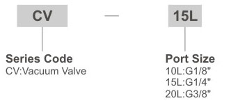 model | Nozzle diameter mm | Rated pressure MPa | Suction flow R/min(ANR) | Reach vacuum pressure kPa | Air consumption flow rate R/min(ANR) |