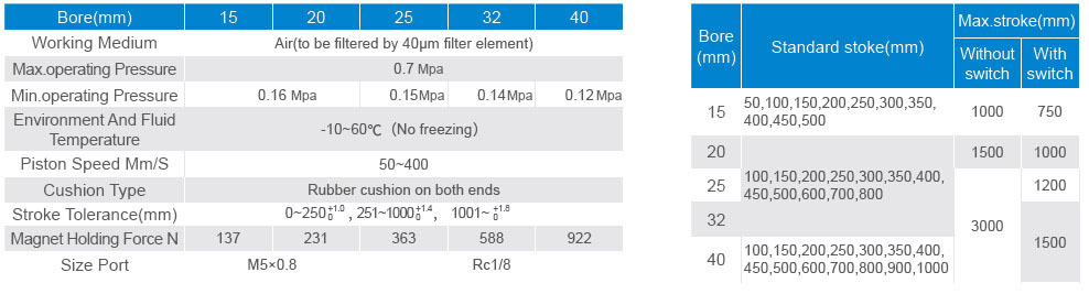 Working Medium | Air(To be filtered by 40μm filter element) | |||||||