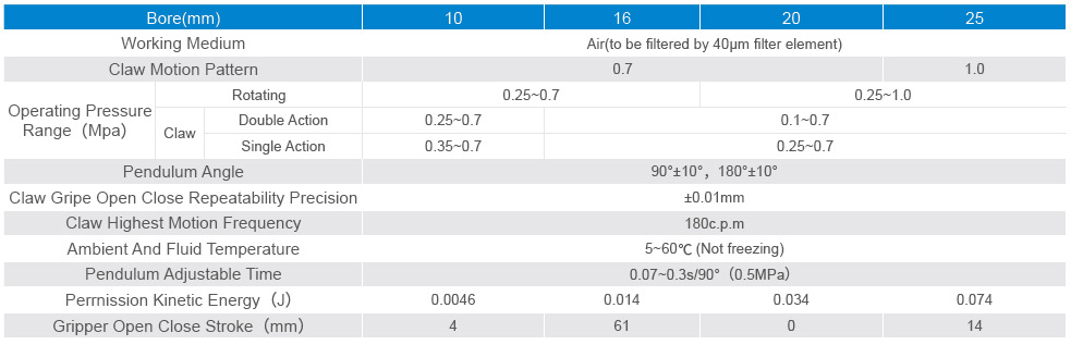 Working Medium: | Air(to be filtered by 40μm filter element) |