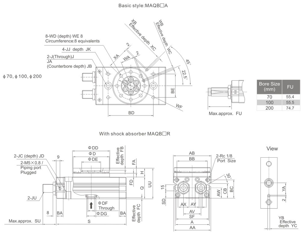 200 | 74 | 240 | 29 | 108 | 40.2 | 106 | 44 | 8H9 | 8.5 | M12×1.75 | 16.5 | 90 | 69 | 8H9 | 4.5 | 54 | 8H9 | 6.5 |