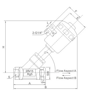Orifice Size(mm) | Port size | Actuator Size( mm) | A | B | C | φE | F | H | S | SW | G | L |