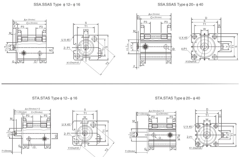 40 | - | G1/8" | (Double Sides):Φ10/(Thread):M8×1.25/(Through ports):Φ6.5 | 20 | 7.5 | 6.5 | 52 | 40 | - | 2.25 | 16 | 14 | 21.3 | 16 |