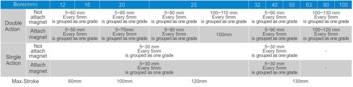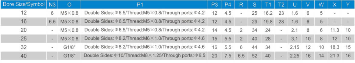 Bore(mm) | 12 | 16 | 20 | 25 | 32 | 40 | 50 | 63 | 80 | 100 | |