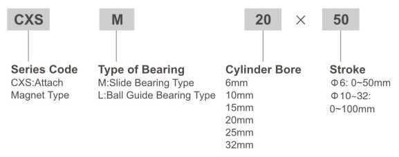 CXS 10-30 | 30 | 85 | 40 | 102 | CXS□15-30 | 30 | 90 | 35 | 109 | CXS 20-30 | 30 | 100 | 40 | 124 | CXS 25-30 | 30 | 102 | 40 | 126 | CXS 32-30 | 30 | 112 | 50 | 142 |