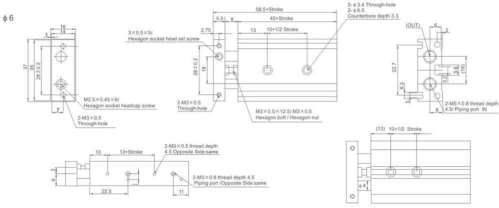 2-M5×0.8 | Φ12 | 10 | M6×1.0×18.5L | 64 |
