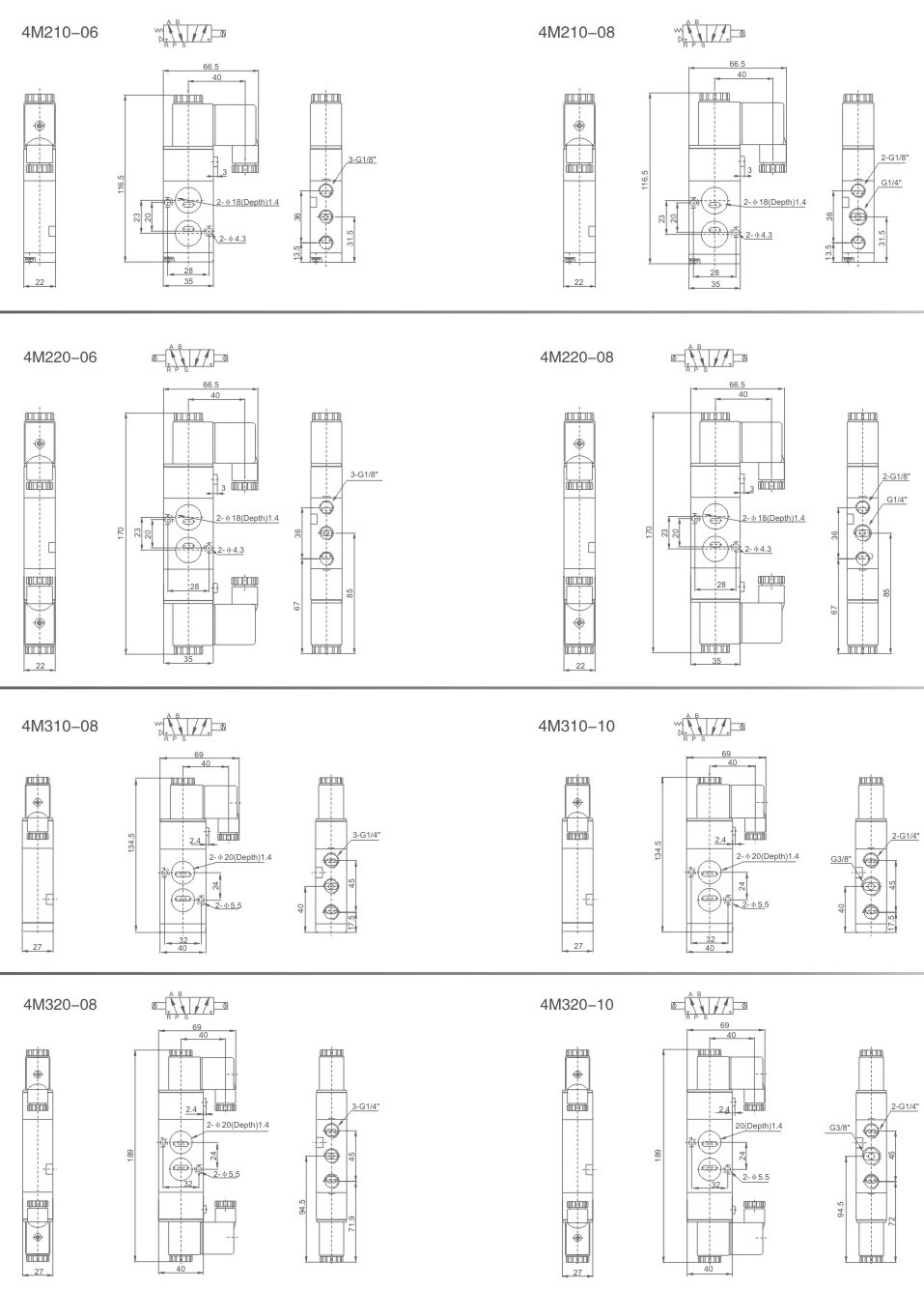 Model | 4M210-06 | 4M220-06 | 4M210-08 | 4M220-08 | 4M310-08 | 4M320-08 | 4M310-10 | 4M320-10 |