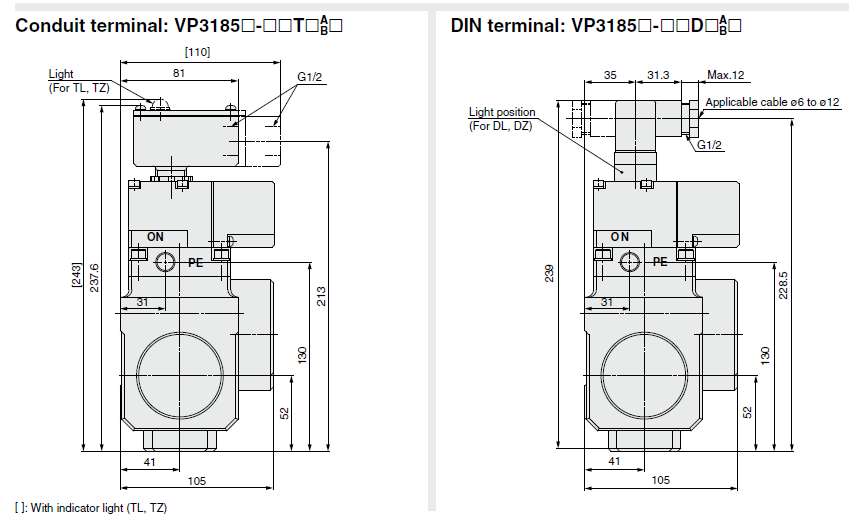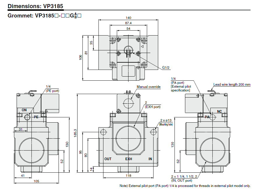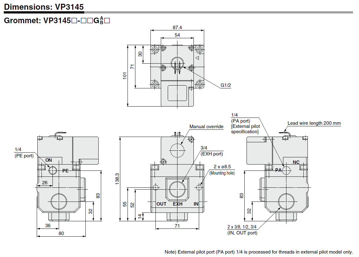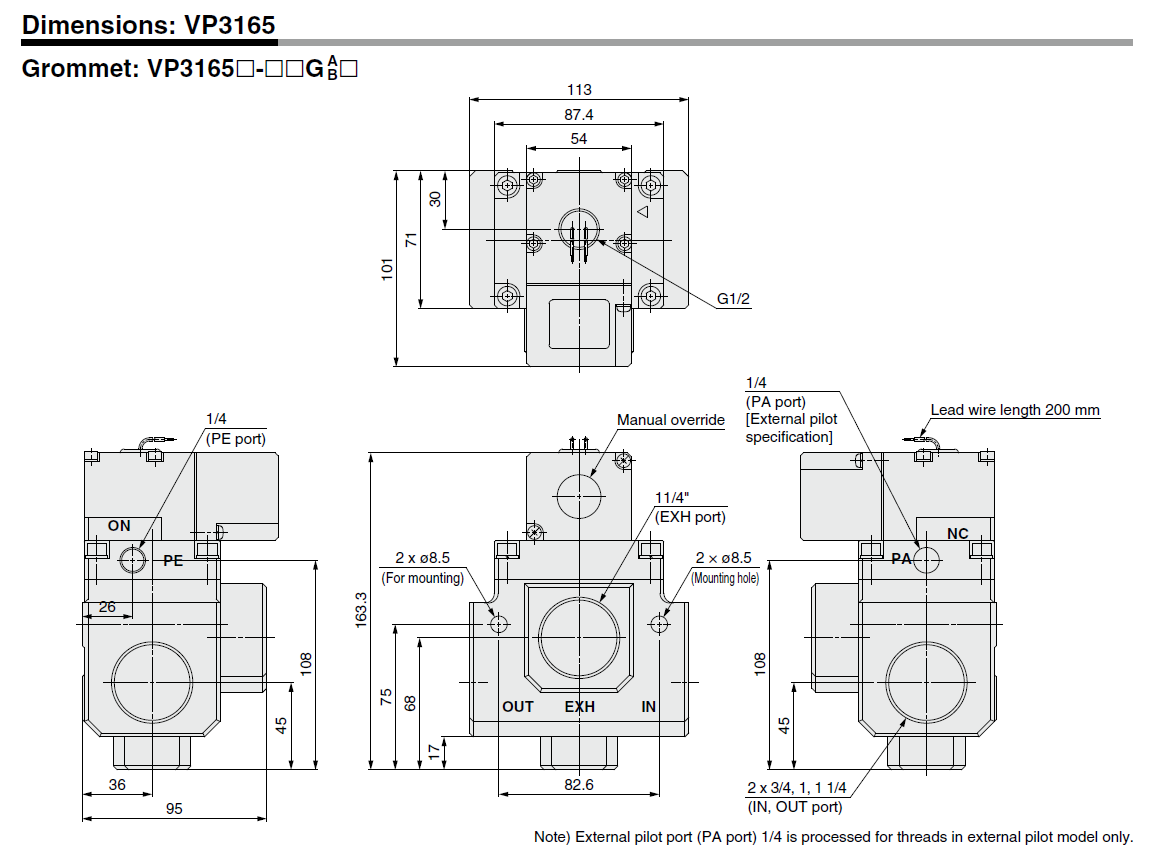 Large Size 3-Port Solenoid Valve VP3145/3165/3185