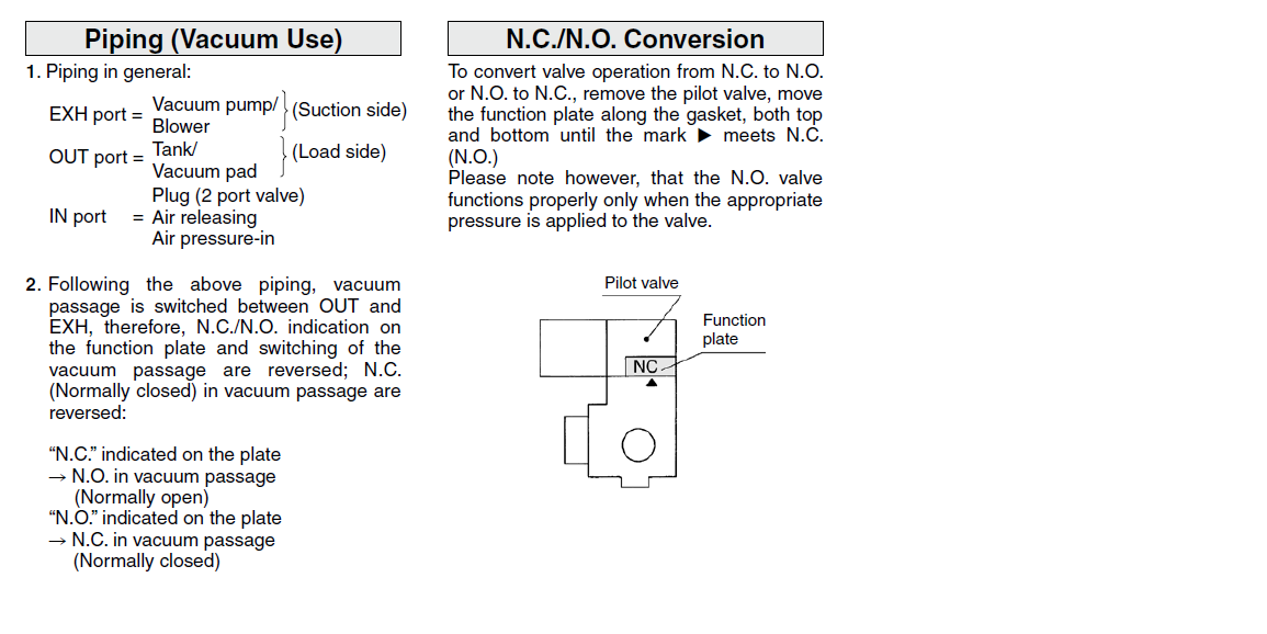 Operating pressure range (MPa) | Main pressure | 0.2 to 0.8 | –101.2 kPa to 0.2 | 0.2 to 0.8 | |||