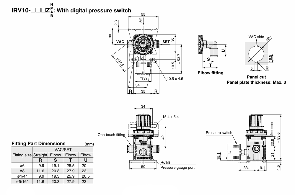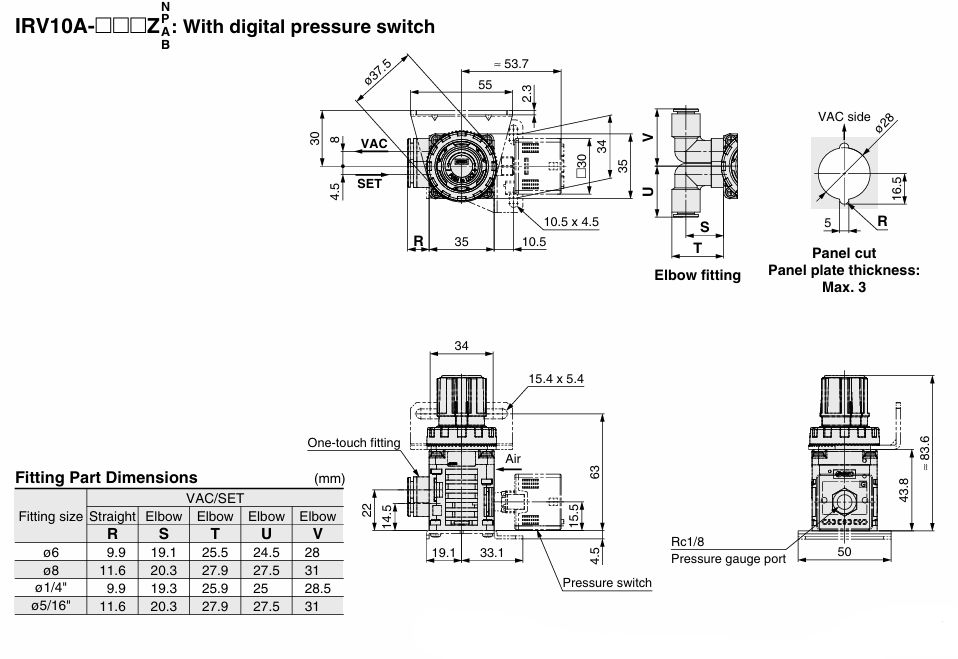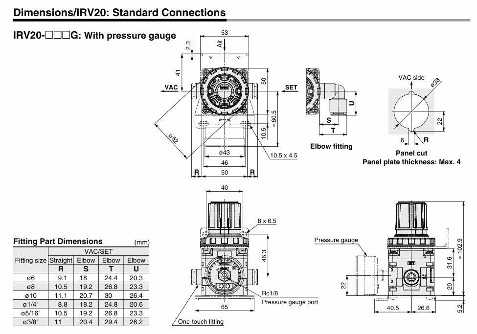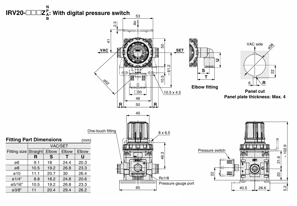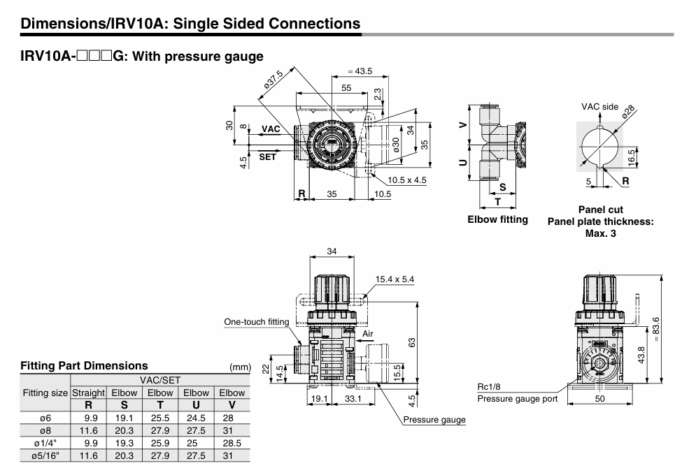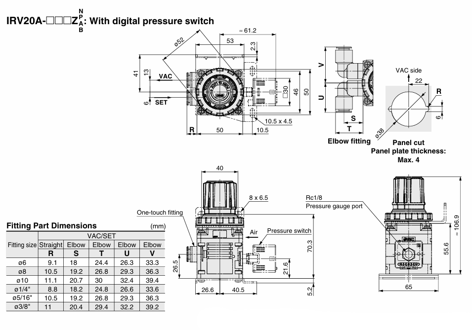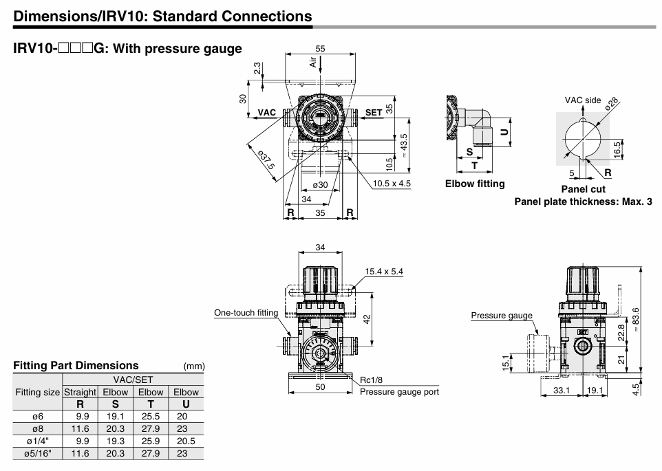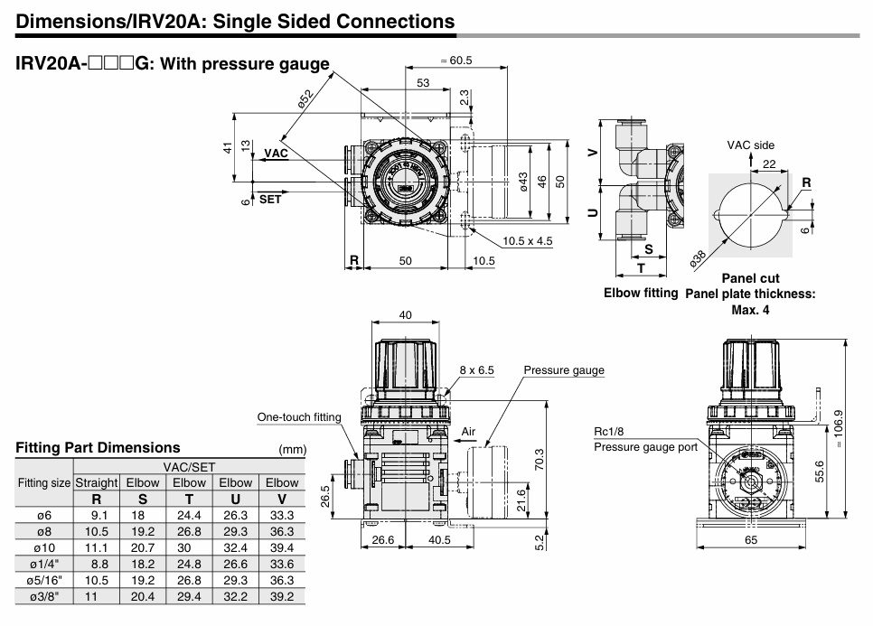 VAC side tubing O.D. | ø6, ø8 ø1/4", ø5/16" | ø6, ø8, ø10 ø1/4", ø5/16", ø3/8" | |